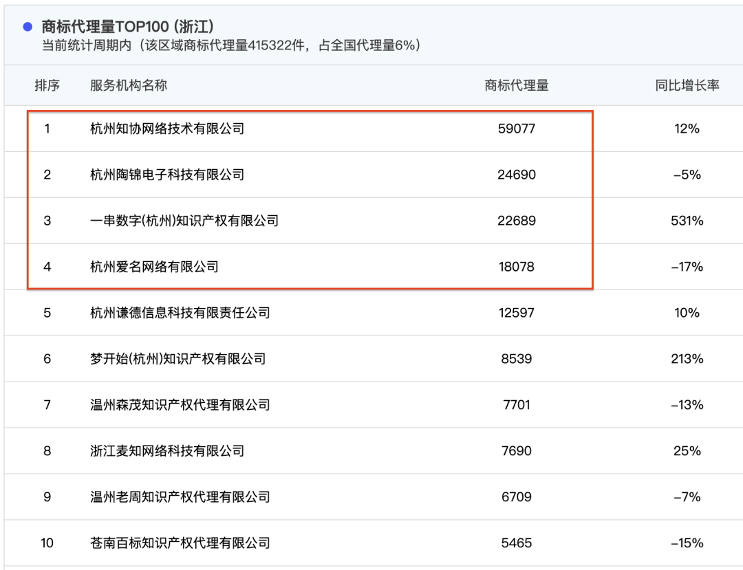 《浙江商标代理机构代理量排名》数据来源于国家知识产权局已受理的商标申请
