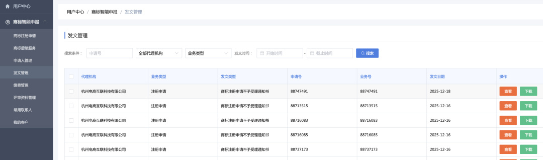 所有申请的商标局业务号自动捕获并关联至系统对应业务,实现从创建申请到官方受理的全流程自动追踪,无需手动记录与核对。
