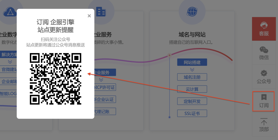 网站新增信息更新订阅功能,在网站页面,用户点击侧边“订阅”按钮,使用微信扫码关注公众号即可订阅网站消息。