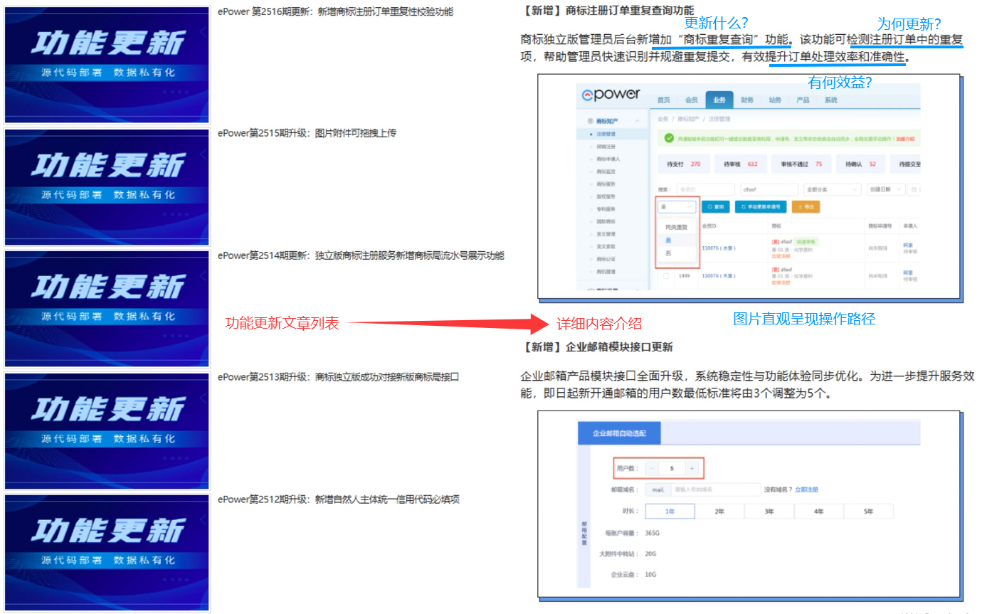 每次更新,ePower都会通过公众号或官网资讯发布详细的图文说明,清晰阐述更新内容、原因及其带来的价值,清晰回应用户关于“更新什么”“为何更新”以及“有何效益”等疑问。