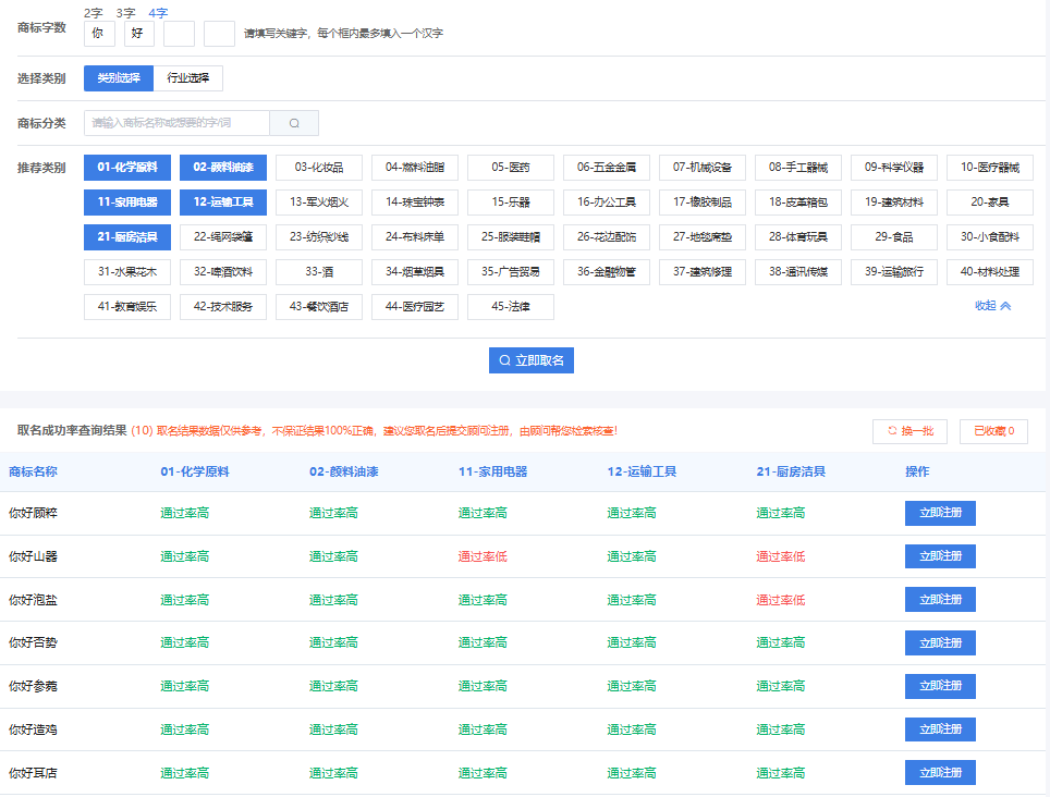 智能取名,一键生成高通过率商标