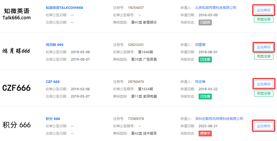 用户可对自己或感兴趣的商标开启状态监控,一旦商标因被撤三、到期或注销而“空出”,系统第一时间发出通知,帮用户快速反应、抢先注册。这项功能为用户创造“抢占先机”的独特价值,也成为平台增强用户活跃度的有力工具。