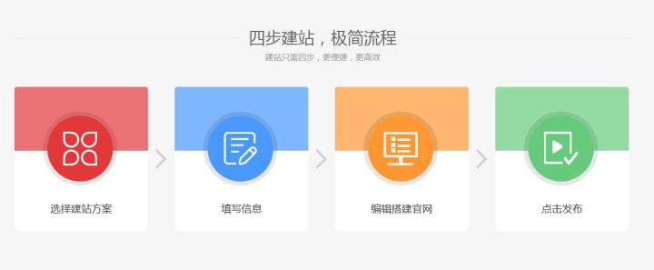 官微建站功能免费,用户只要简单四步就可完成自己的官网创建。输入简单的网站信息,选择您合适的行业模板,点击创建,即可发布一个成熟的官网。